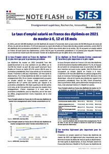 Le taux d’emploi salarié en France des diplômés en 2021 de master à 6, 12 et 18 mois